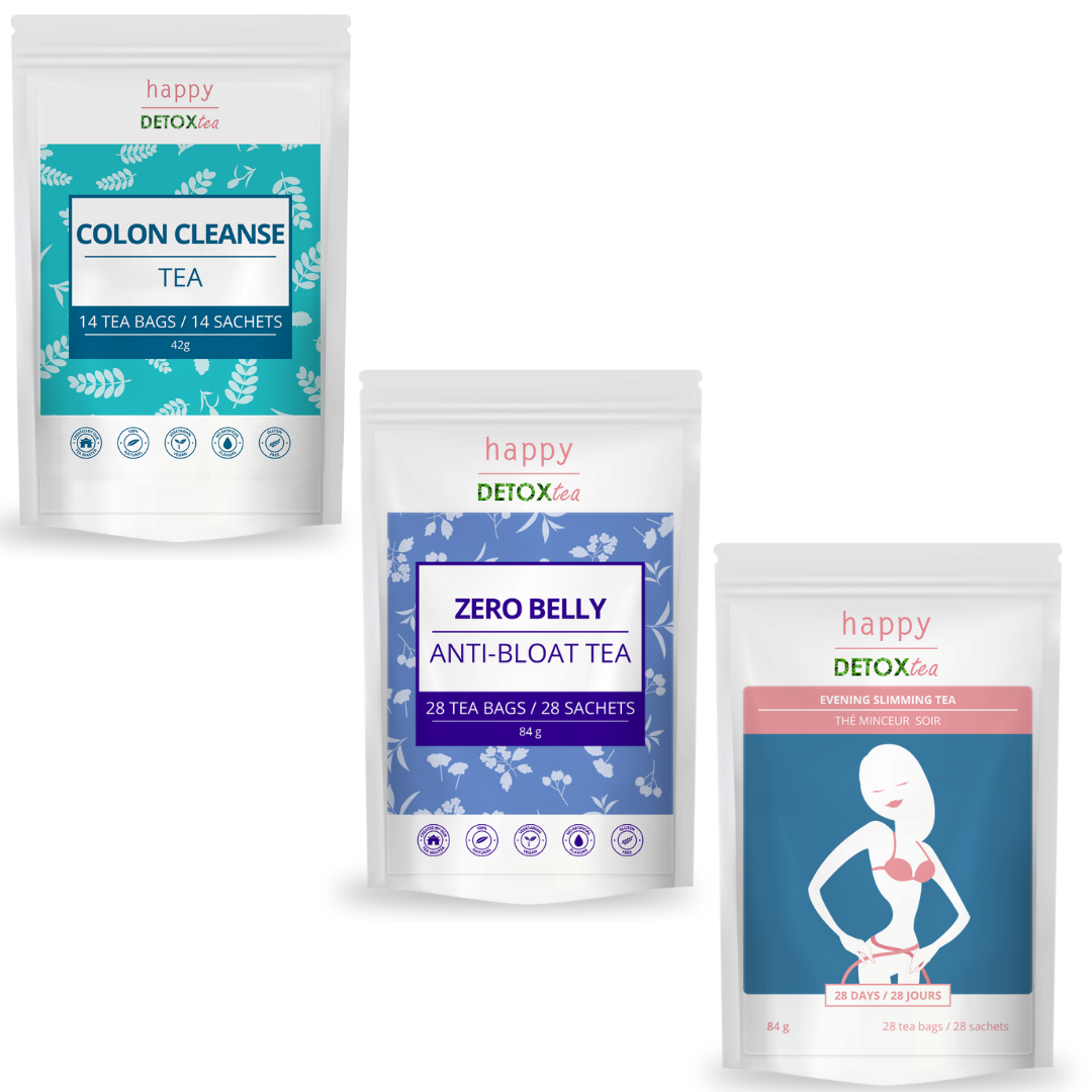 Le Trio minceur Happy Detox Tea contient : Thé Minceur Original - Thé Zero Belly - Thé Colon Cleanse